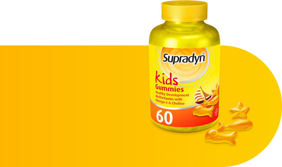 Give your kids the best start with Supradyn, for healthy physical and mental development to help them realise their full potential. Supradyn Kids Gummies are a fun way to help your kids get the vitamins they need each day. Each chewable gummy contains Omega-3 and Choline to support intellectual development, as well as vitamins B and C. Make Supradyn Kids part of your children’s daily diet and give them what they need to grow healthily and happily!